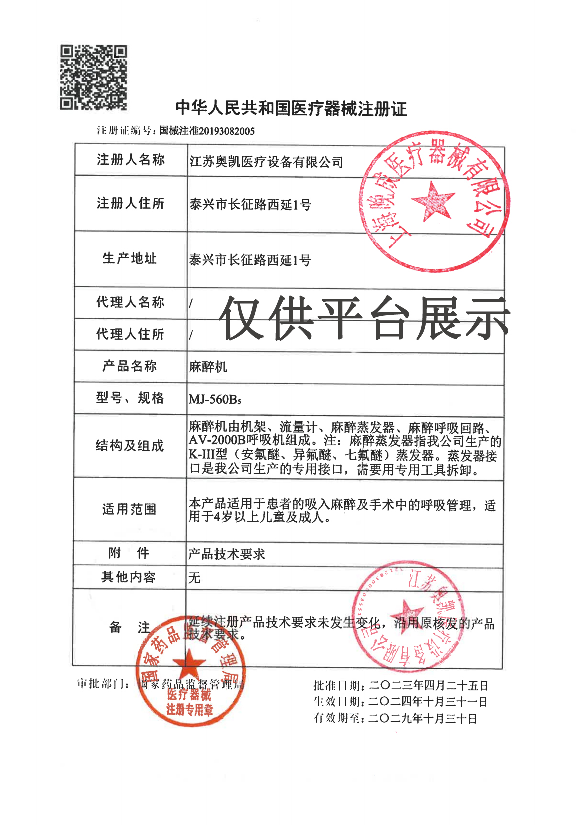 產(chǎn)品名稱 : 奧凱麻醉設(shè)備MJ-560B5