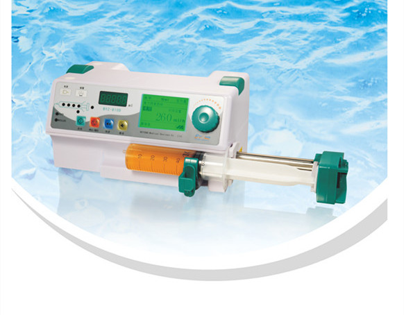 8、聲光報警功能:藥物將盡,注射完畢、設(shè)定劑量注射完畢、注射阻塞、注射器脫落、注射器未正確安裝,速率設(shè)置錯誤提示交流電源已拔出報警、電池電量不足請接外電源