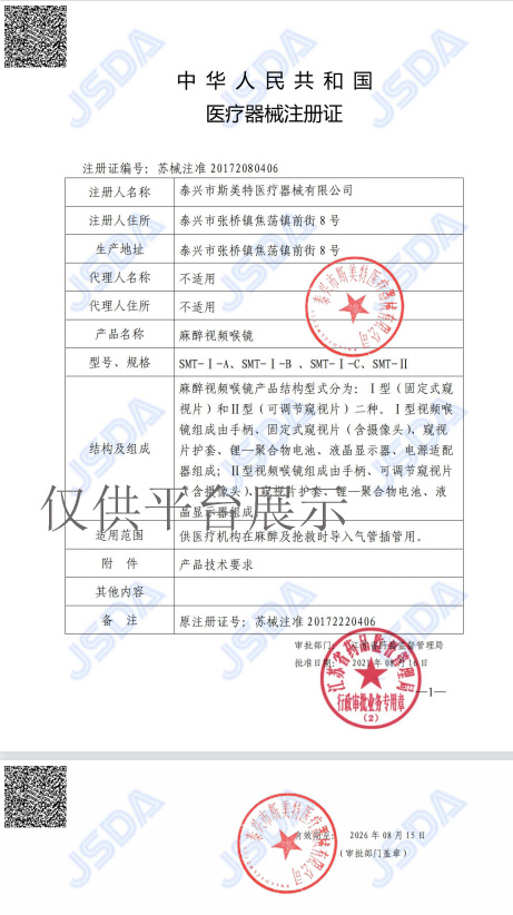 | 產(chǎn)品名稱 : | 斯美特醫(yī)用可視喉鏡SMT-II |