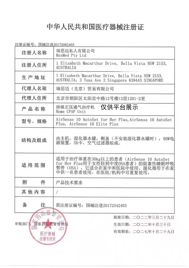 | 產(chǎn)品名稱 : | 瑞思邁全自動雙水平呼吸機(jī)S10 |