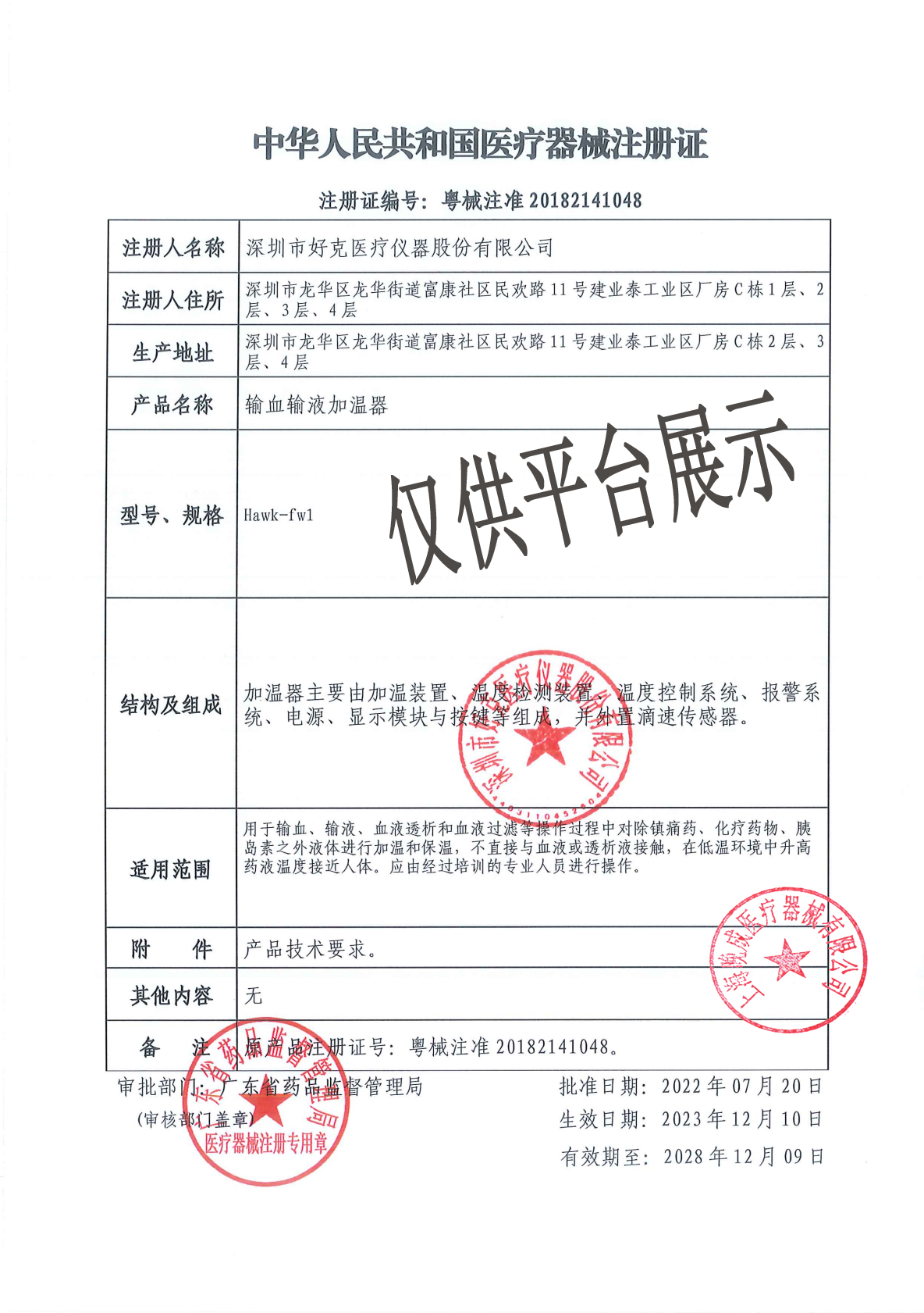 | 產(chǎn)品名稱 : | 深圳好克 輸血輸液加溫器 Hawk-fw1型 |