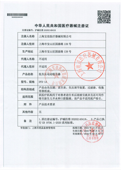1、極限負(fù)壓值:18KPa±1.5KPa(135±11mmHg)